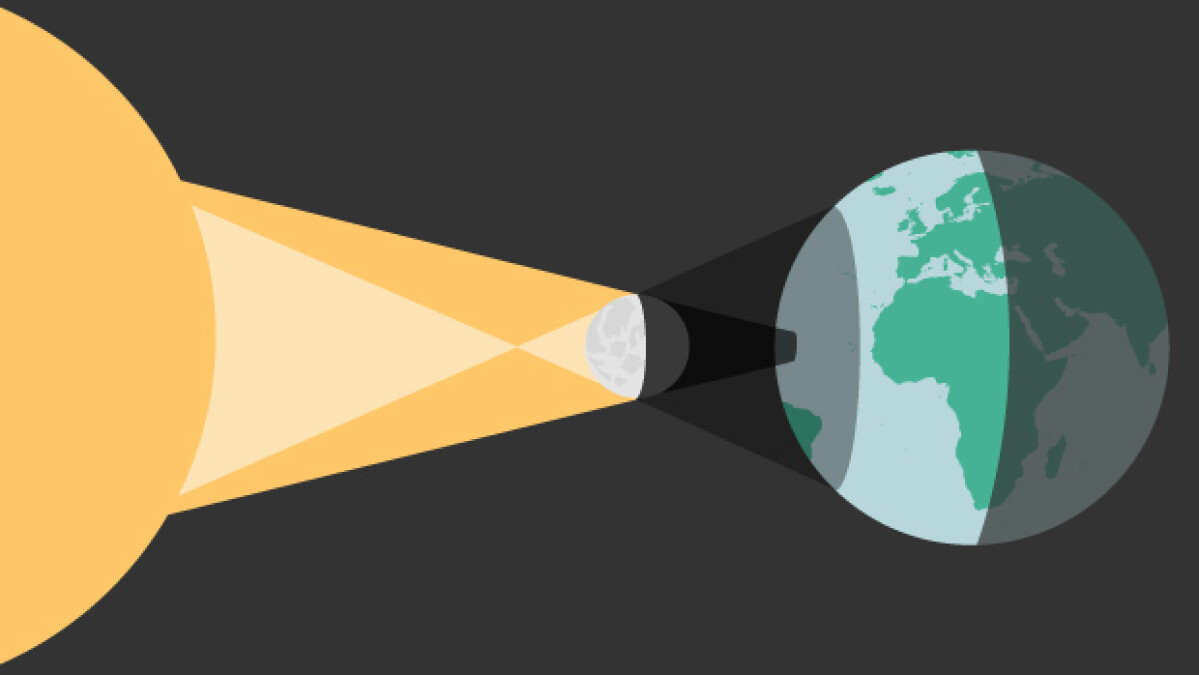 En solformørkelse opstår, når månen placerer sig præcis mellem jorden og solen.